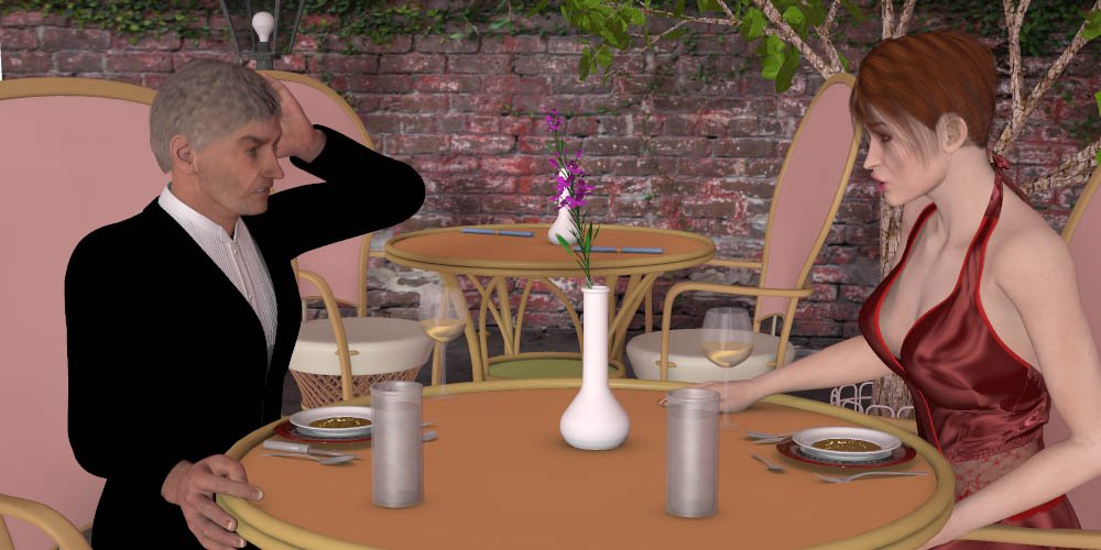 Luxana: No, I mean yes, I mean I'm not a spy. The security thing is about my job. The Treatment Center does some extremely critical and sensitive work. OK – I'm changing the subject. I just had an idea, let's hurry up and eat and then you can take me to that romantic spot near the river.